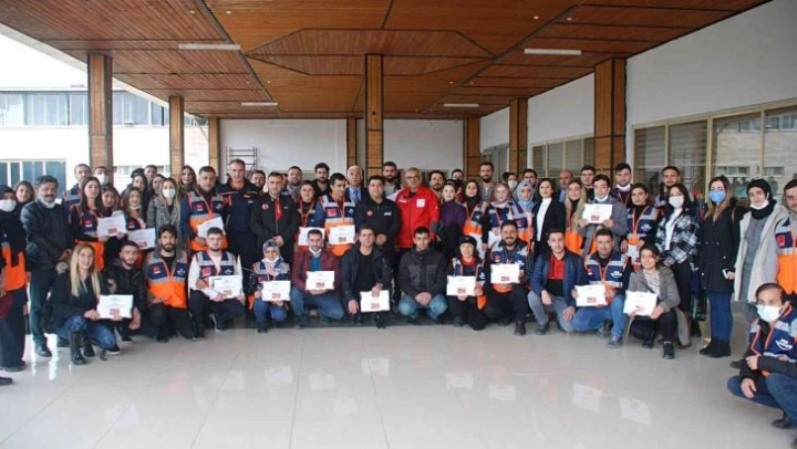 Saha eğitimlerini tamamlayarak destek AFAD gönüllüsü olan 250 AFAD gönüllüsüne 'Destek AFAD Gönüllüsü' kimlik kartları dağıtımında gerçekleştiği program kokteyl, pasta kesimi ve toplu fotoğraf çekimiyle son buldu.