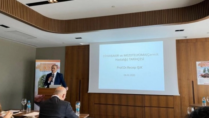 Dicle Üniversitesi tıbbi onkoloji, göğüs hastalıkları ve göğüs cerrahi bölümü tarafında yapılan sempozyumda Prof. Dr. Abdurrahman Işıkdogan ve Prof. Dr. Refik Ülkü hastalık hakkında sempozyumda açıklamalarda bulundu. Diyarbakır'da bir otelde yapılan sempozyum hakkında bilgi veren Prof Dr. Abdurrahman Işıkdoğan Diyarbakır'ın Türkiye'de mezotelyomanın en çok görüldüğü bölgelerden biri olduğunu söyledi. Prof. Dr. Işıkdoğan, ''Çoğunlukla mesleki maruziyet veya çevresel etkenlerle oluşan ve ne yazık ki kaçınılmaz ölümle sonuçlanan bu hastalığın bölgemizdeki önemli özelliği hemen tamamına yakının çevresel asbest maruziyeti ile olmasıdır. Bölgemizde özellikle Çermik, Çüngüş, Maden, Ergani, Siverek yöresinde geçmişte kullanılan beyaz toprak çevresel olarak en önemli maruziyettir. Dolayısıyla önlemin de çok önemli olduğu bir hastalık olan bu hastalığı tüm detayları ile gündeme getirmeyi hedefledik'' dedi.
