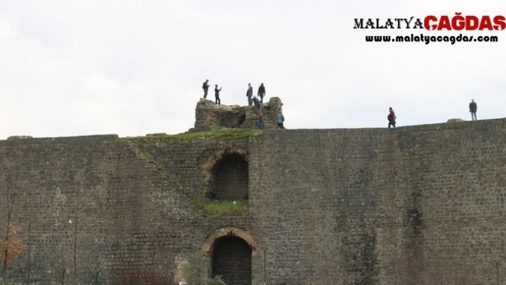Diyarbakır'da UNESCO Dünya Kültür Mirası Listesi'nde yer alan surlara çıkmak yasaklandı. Çevreye asılan 'Surlara çıkmak tehlikeli ve yasaktır' tabelalarına aldırış etmeyen vatandaşlar ise, fotoğraf çektirmek isterken ölümle burun buruna geliyor.