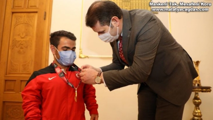 Sivas Valisi Salih Ayhan, Kolombiya'nın Bogata şehrinde yapılan Bedensel Engelliler Halter Dünya Kupası ve Olimpiyat Kota Yarışmasında 165 kilo kaldırarak Dünya Şampiyonu olan Abdullah Kayapınar'ı altınla ödüllendirdi.