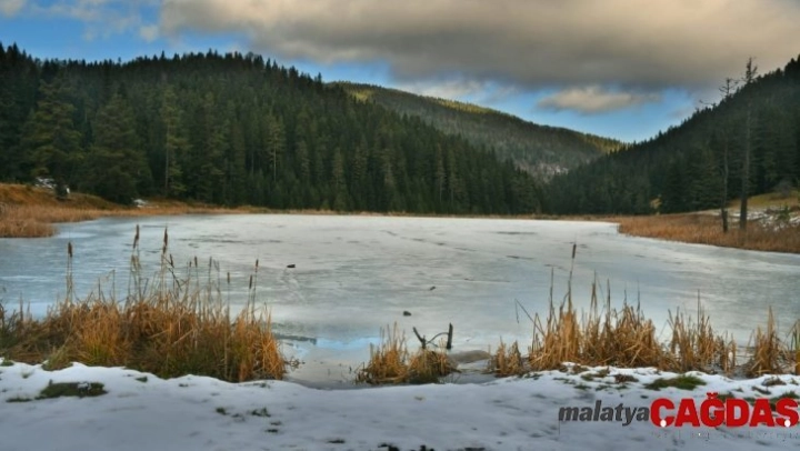 Karabük'te 1999 rakımlı Keltepe mevkisinde yer alan Eğriova Göleti buz tuttu.