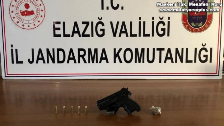 Edinilen bilgiye göre, İl Jandarma Komutanlığı'na bağlı ekipler, uyuşturucu ile mücadele kapsamında yaptıkları çalışmada uyuşturucu madde ticareti yapma ve sağlama suçundan 8 yıl 4 ay kesinleşmiş hapis cezası bulunan S.K. isimli şahsın Palu ilçesine gideceği bilgisine ulaştı. Bunun üzerine bulunduğu araç belirlenen şüpheli, düzenlenen operasyonla yakalandı. Şüphelinin aracında yapılan aramada 30 gram esrar ve ruhsatsız tabanca ele geçirildi. Adliyeye sevk edilen S.K., çıkarıldığı mahkemece tutuklanarak cezaevine gönderildi.