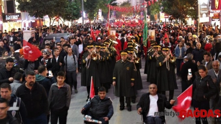 Elazığ'da 29 Ekim Cumhuriyet Bayramının 96. yıl dönümü, fener alayı yürüyüşüyle kutlandı.