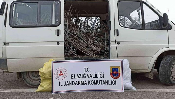 Elazığ'da yaklaşık bin 500 metre uzunluğunda haberleşme ve enerji nakil kablosunu çalan şüpheli, jandarma tarafından yakalandı.