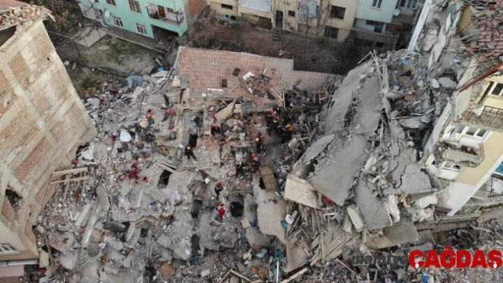 Önceki gün Sivrice ilçesi merkezli 6.8 büyüklüğündeki depremde Elazığ'da ve Malatya'da yıkım yaşanmıştı. Bölgeye gönderilen arama kurtarma ekipleri 24 saat aralıksız çalışma yapıyor. Merkeze bağlı Mustafa Paşa Mahallesi'nde bulunan 5 katlı apartmanının enkaz alanında da çalışmalar sürüyor. Ekiplerin enkaz alanındaki çalışmaları drone ile havadan görüntülendi.