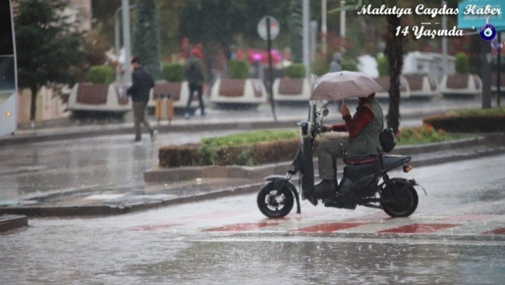 Meteoroloji'nin uyardığı kuvvetli yağış Elazığ'da etkili oluyor. Kentte ara ara devam eden sağanak yağış, sabah saatlerinde şiddetini arttırdı. Yoğun yağış nedeniyle bazı noktalarda su birikintileri oluşurken, sürücüler yollarda temkinli seyretmeye çalıştı. Şemsiyesi olan vatandaşlar ıslanmaktan kurtulurken, hazırlıksız olan bazı vatandaşlar da ıslandı.