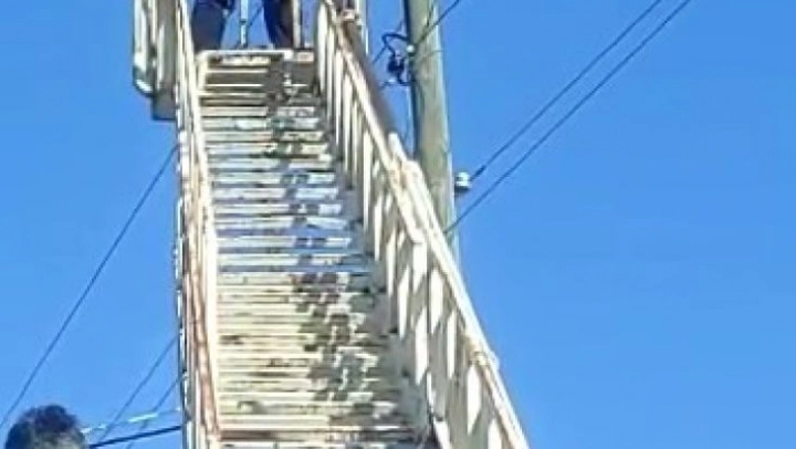Elektrik direğinde mahsur kalan kedi kurtarıldı