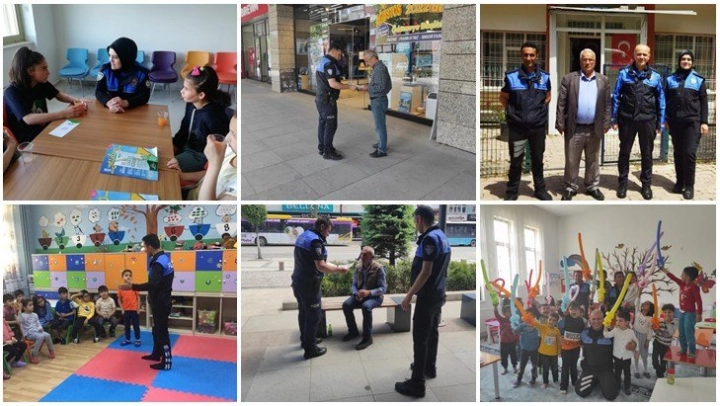 Toplum Destekli Polislik Şube Müdürlüğü ekipleri ilk olarak Anaokulu, Kuran Kursu ve Gençlik Merkezinde bulunan öğrencilere genel güvenlik konusunda bilgilendirmeler yaparak çeşitli hediyeler verdi.