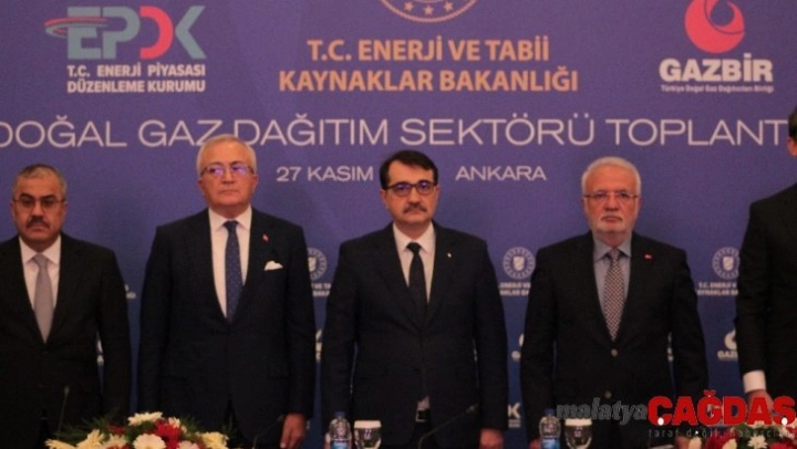 Enerji ve Tabii Kaynaklar Bakanı Fatih Dönmez, Bilkent Otel ve Konferans Salonu'nda gerçekleştirilen 'Doğal Gaz Dağıtım Sektörü Toplantısı'na katıldı. Toplantı tanıtım filminin ardından Türkiye Büyük Millet Meclisi (TBMM) Sanayi, Ticaret Enerji, Tabii Kaynaklar, Bilgi ve Teknoloji Komisyonu Başkanı Mustafa Elitaş, Enerji Piyasası Düzenleme Kurumu (EPDK) Başkanı Mustafa Yılmaz, Türkiye Doğal Gaz Dağıtıcıları Birliği (GAZBİR) Başkanı Yaşar Arslan'ın yaptığı açılış konuşmalarıyla başladı. Toplantının açılış konuşmasını yapan Enerji ve Tabii Kaynaklar Bakanı Dönmez, doğal gaz dağıtım sektörüne ilişkin sayısal verileri açıkladı. Enerji ve Tabii Kaynaklar Bakanlığının doğal gazda 'Vatandaş Memnuniyeti ve Beklentileri' araştırması yaptığını belirten Dönmez, müşteri memnuniyetiyle ilgili dönütleri de paylaştı. 1987 yılından bu yana doğal gaz sektörünün gelişiminin Türkiye'nin geçirdiği büyük değişimin de aynası olduğunu aktaran Dönmez, Türkiye Cumhuriyeti'nin büyüdükçe doğal gaz sektörünün de tüm değeriyle birlikte büyüyeceğine vurgu yaptı. 2002 yılında sadece 5 büyükşehirde doğal gaz kullanıldığını hatırlatan Dönmez, günümüzde doğal gazın 81 il ve 531 ilçenin tamamında kullanıldığını belirtti. Doğal gaz abone sayısının 15 milyon 800 bine ulaştığını söyleyen Dönmez, doğalgazdan yararlanan kişi sayısının da 66 milyon 500 bin olduğunu aktardı. Dönmez, Cumhurbaşkanı Recep Tayyip Erdoğan'ın göreve geldikten sonra 'Doğal gazı olmayan şehir kalmayacak' sözünü hatırlatarak, BOTAŞ ve illerde bulunan enerji dağıtım şirketlerinin bu uğurda büyük bir özveriyle çalıştığını dile getirdi. Bakan Dönmez, 'Doğal gaz iletim ve dağıtım altyapımızın yıldan yıla nasıl bir gelişim kaydettiğini, nereden nereye geldiğini görüyorsunuz. 2002 yılında iletim ağımız 4 bin 500 kilometre iken, bugün 4 kat artışla 18 bin kilometreye ulaştı. Daha rahat anlaşılması için şu örneği vermek istiyorum. Türkiye'nin bir ucundan diğer ucunu 9 defa kat edebilecek bir altyapıdan söz ediyoruz. Dağıtım altyapımız ise videoda da bahsedildiği üzere dünyanın etrafını 3,5 kez dolaşabilecek büyüklüğe erişti' ifadelerini kullandı.