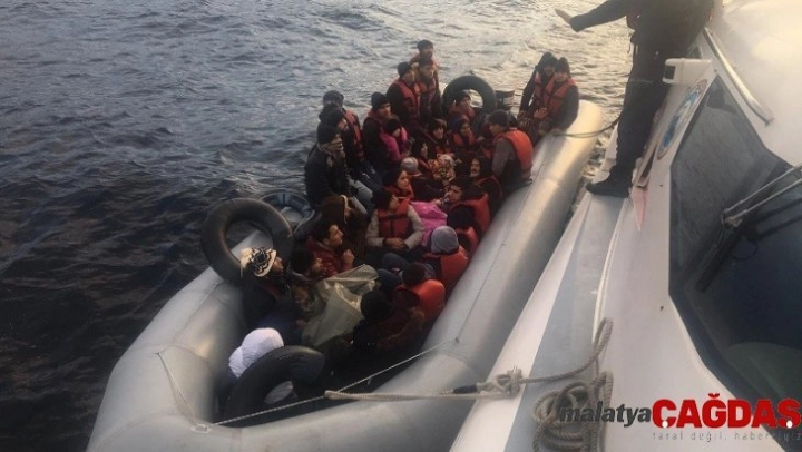 Edirne'nin Enez ilçesi açıklarında lastik bot içinde, Yunanistan'a geçmeye çalışan 38 düzensiz göçmen yakalandı.