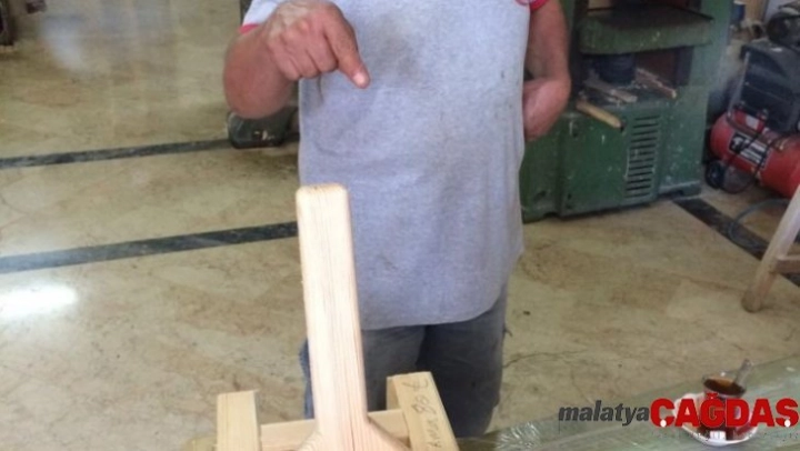 Erdekli marangoz ustası Ömer Kolcu, ahşaptan ceviz ve zeytin kırma aleti yaptı.