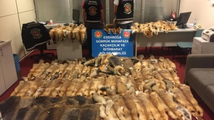 Ticaret Bakanlığı Gümrük Muhafaza ekipleri, Esenboğa Havalimanı'nda gerçekleştirilen operasyonda 350 bin lira değerinde 128 adet kunduz ve tilki postu ele geçirdi.