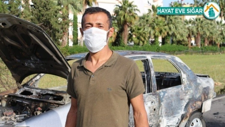 Edinilen bilgilere göre, olay, dün saat 17.00 sıralarında meydana geldi. Koru Mahallesi Fidanlık Caddesinde, 07 NUU 17 plakalı otomobilin sürücüsü Halil Kesici, otomobilde bulunan eşi Pembe Kesici ile tartıştı. Tartışma esnasında sinirlenen Halil Kesici, otomobilini yol kenarına çekerek araçtan indi. Eşi Pembe Kesici de otomobilden inerek yürüyerek evine döndü. Otomobilin yanından uzaklaşan Halil Kesici'yi bir süre sonra çevrede bulunan bir arkadaşı arayarak otomobilinin yandığını söyledi. Panik halinde otomobilin yanına gelen Halil Kesici gözlerine inanamadı. LPG'li otomobile yaklaşmayan Halil Kesici, olay yerine gelen itfaiyenin otomobili söndürme çalışmalarını izlemekle yetindi.