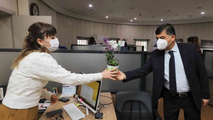 Şehitkamil Belediye Başkanı Rıdvan Fadıloğlu, 8 Mart Dünya Kadınlar Günü dolayısıyla kadın personelleri çalıştıkları birimde ziyaret ederek çiçek armağan etti.