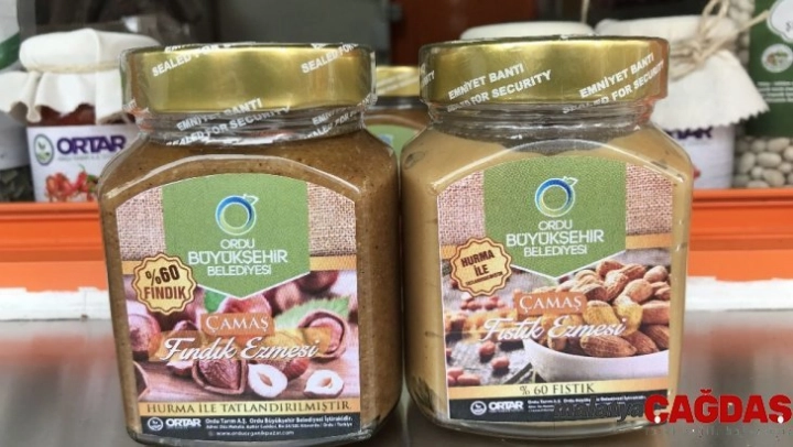 Satış reyonlarında ürün yelpazesini her geçen gün arttıran Ordu Büyükşehir Belediyesi, içinde şeker yerine hurma ile tatlandırılan fındık ve fıstık ezmesini halkın beğenisine sundu. Çamaş ilçesinde üretilen ve içeriğinde şeker yerine hurma olan fındık ve fıstık ezmesi yeni bir damak tadı olarak halk ile buluştu.