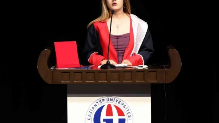 Spor Bilimleri Fakültesi Aysel Yılmaz'ın mezuniyet törenine katılamaması nedeniyle yayımladığı mesajda, Gaziantep Üniversitesinde geçirdiği eğitim öğretim hayatı boyunca güzel anılar, birçok kazanım biriktirdiğini ve unutulmaz dostluklar kurduklarını ifade ederek, 'Amacımız bu kazandığımız mesleki bilgileri tecrübeye dönüştürecek fırsatları yakalamak. Kuşkusuz bu süreç okul hayatımızdan daha zor olacak. Zaman zaman umutsuzluğa kapılacak ve belki zorlu hayat şartlarında karamsarlığa düşeceğiz. İşte o zaman bu toprakların hangi şartlarda ve nasıl kazanıldığını hatırlamamız gerekir. Bu yüzden her bir fert olarak hep doğruyu ve hep ileriyi hedeflemeliyiz' diye konuştu.