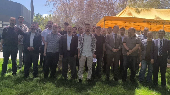 Ümmet bilinciyle hareket ettiklerini vurgulayan Uludağ, 'Bizler İnönü Üniversitesi'nden, ümmet bilincine sahip, mazlumların acısını kendi acısı bilen Müslüman gençler olarak burada toplanmış bulunmaktayız.' ifadelerine yer verdi.