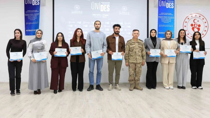 Bingöl'de, Gençlik ve Spor Bakanlığı Gençlik Hizmetleri Genel Müdürlüğü tarafından yürütülen Üniversite Öğrenci Toplulukları İş Birliği ve Destek Programı (UNİDES) kapsamında hayata geçirilen projelerde yer alan üniversite öğrencileri için sertifika töreni düzenlendi. Bingöl Gençlik ve Spor İl Müdürlüğü koordinasyonunda gerçekleştirilen törende, üniversite öğrenci topluluklarının aktif katkıları, akademisyenlerin rehberliği ve proje koordinatörlerinin özverisiyle yürütülen çalışmalarda görev alan öğrencilere sertifikaları takdim edildi. Törende sertifikalar; Bingöl Valisi Dr. Ahmet Hamdi Usta, Bingöl Belediye Başkanı Erdal Arıkan, İl Jandarma Komutanı Tuğgeneral Sabri Küyük ve kurum amirleri tarafından verildi.