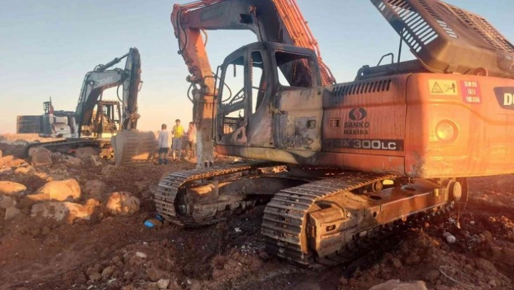 Şanlıurfa'da güneş enerjisi sistemleri (GES) altyapı işinde çalışan 2 iş makinesi gece saatlerinde kimliği belirsiz kişi ya da kişiler tarafından kundaklandı.