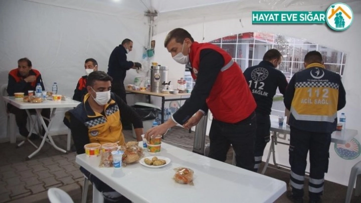 Gölbaşı Belediyesi ekipleri, yurt dışından gelen vatandaşların Gölbaşı mevkiinde bulunan Kredi Yurtlar Kurumu'nda karantinaya alınmasının ardından, karantina bölgesinde çalışan görevli personel ile iftarda buluştu.