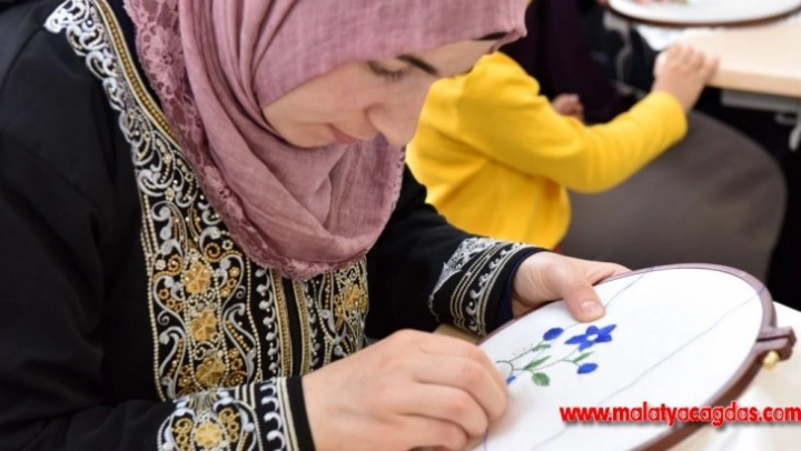 El sanatları kursuna katılan kadınlar, kurs sayesinde hem meslek öğrenecek hem de yaptıkları ürünlerle ev ekonomilerine katkı sağlayacak.