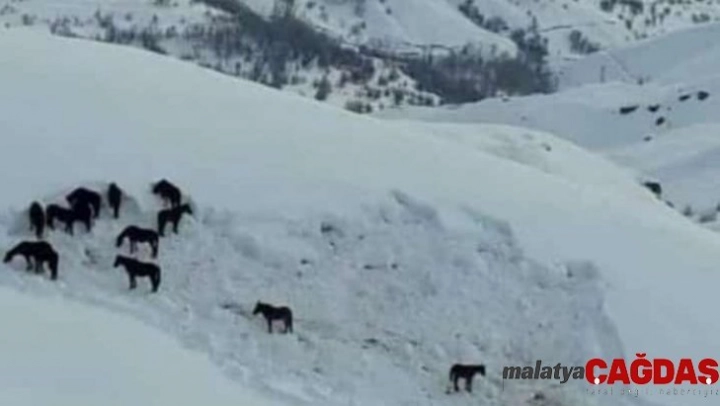Hakkari Valiliği ağır kış şartlarında Durankaya beldesi ve Geçitli köyü yakınlarında sahipsiz kalan atlara sahip çıktı.