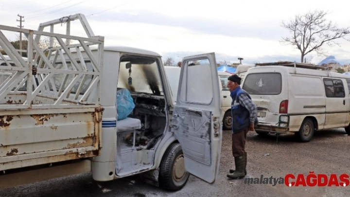 Halk pazarında park halindeyken yanan kamyonet, paniğe neden oldu