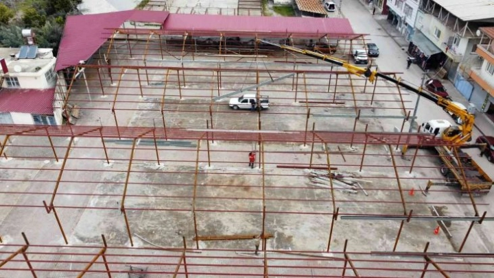 Belediyeden yapılan açıklamada, ocak ayında yoğun kar yağışında dolayı zarar gören yerler arasında olan merkez pazarının çatı direkleri ve makaslarının onarımının bittiği kaydedildi. Açıklamada, yakın zamanda pazar yerinde tüm çalışmaların bitirileceği ifade edilirken, üst sacları atılıp vatandaşların hizmetine sunulacağını belirtildi.
