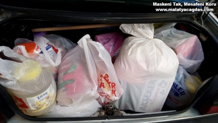 Adıyaman Yenimahalle Eski Muhtarı Barış Büyükşahin, hayırseverlerden aldığı yardımı ihtiyaç sahiplerine ulaştırıyor.