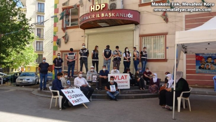Çocukları terör örgütü PKK tarafından zorla kaçırılarak dağa götürülen ailelerin HDP Diyarbakır il binası önündeki evlat nöbeti 633'üncü gününde de ilk günkü kararlılıkla sürüyor.