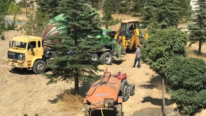 Hekimhan Belediyesi yol çalışma alanındaki ağaçları taşıyor