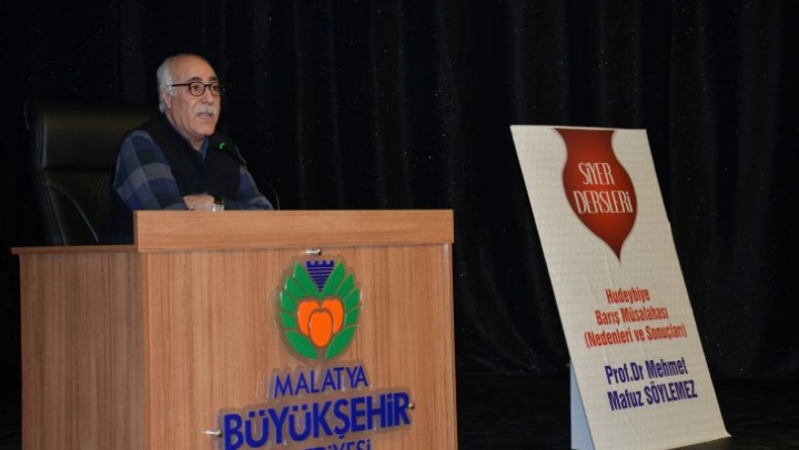 Malatya Büyükşehir Belediyesi Kültür ve Sosyal İşler Dairesi tarafından düzenlenen Medine Dönemi Siyer Dersleri'nin11'ncisi gerçekleştirildi. Derste, Prof. Dr. Mehmet Mahfuz Söylemez, “Hudeybiye Barış Müsalahası (Nedenleri ve Sonuçları)”nı anlattı.