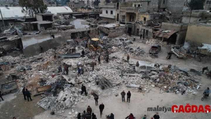 Suriye'de Beşar Esad rejimine ait savaş uçakları Rusya ve Türkiye'nin girişimleriyle ilan edilen ateşkese rağmen önceki gün İdlib'e ağır hava saldırıları gerçekleştirdi. İdlib'in farklı bölgelerine düzenlenen hava saldırılarında 19 kişi hayatını kaybederken, 68 kişi de yaralandı. Saldırı noktalarının başında yer alan ve büyük tahribatın yaşandığı merkez sanayi bölgesi drone ile görüntülendi. Çok sayıda aracın da kullanılamaz hale geldiği patlamada, enkaz altı ve çevresinde çalışma başlatıldı.