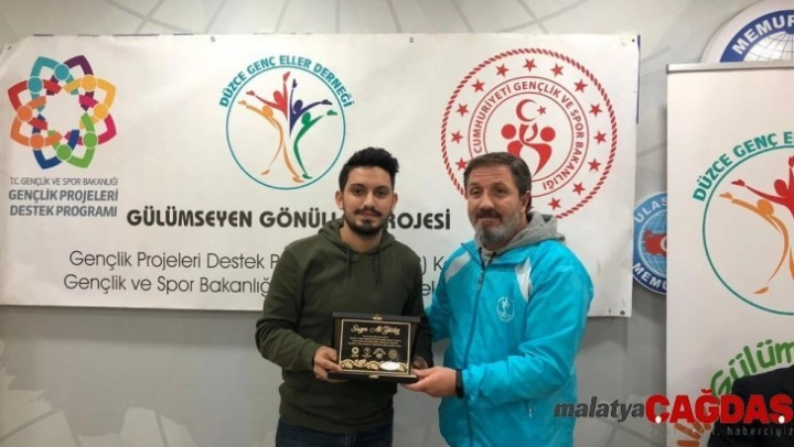 Düzce Genç Eller Derneği'nin Gençlik ve Spor Bakanlığı'ndan almış olduğu destek ile gerçekleştirdiği 'Gülümseyen Gönüller Projesinin' plaket takdim programı gerçekleştirildi. Programda İhlas Haber Ajansı Düzce Büro Şefi Ali Yıldız'da gençlere verdiği destek nedeniyle plaket aldı.