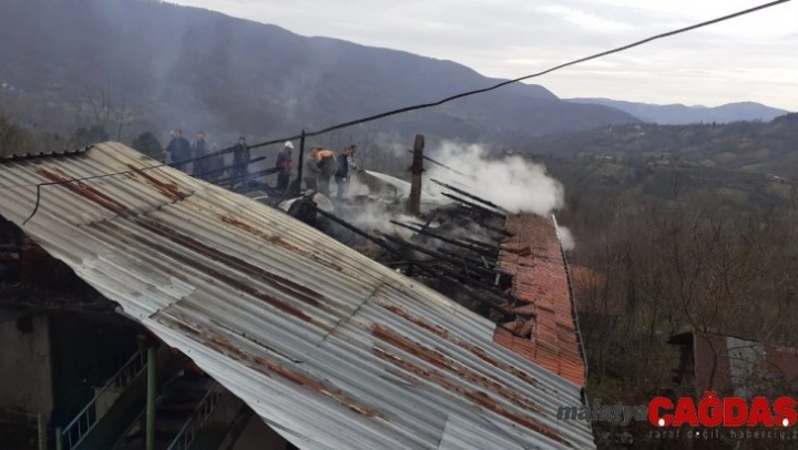 Karabük'ün Yenice ilçesinde meydana gelen yangında iki katlı evin çatısı küle döndü.