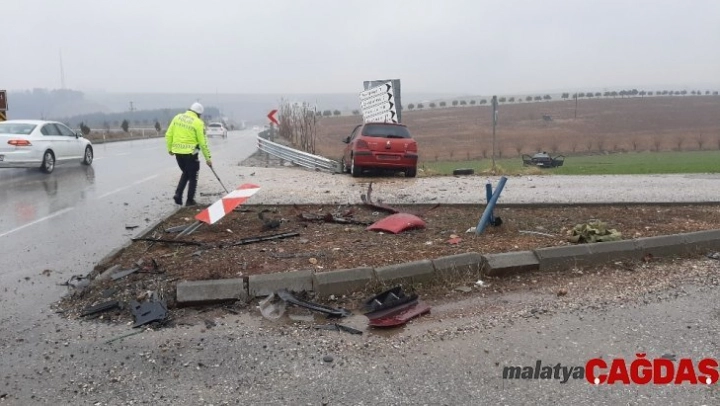 Edinilen bilgilere göre, sürücüleri öğrenilemeyen 44 KT 254 plakalı otomobil ile 06 BKU 813 plakalı otomobil, Adıyaman- Kahta Karayolu Beşpınar Mesire alanı yakınlarında bulunan kavşakta çarpıştı. Çarpışmanın etkisiyle 06 BKU 813 plakalı otomobil yol kenarında bulunan tabelalara çarparak durabilirken 44 KT 254 plakalı otomobil ise buğday tarlasına girerek buradaki çamura saplanarak durabildi.