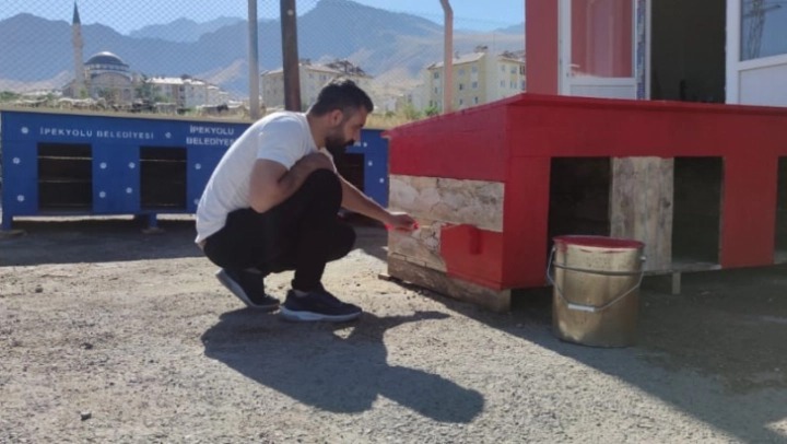 Van'ın merkez İpekyolu Belediyesi, sokak hayvanları için kulübe yapıyor.