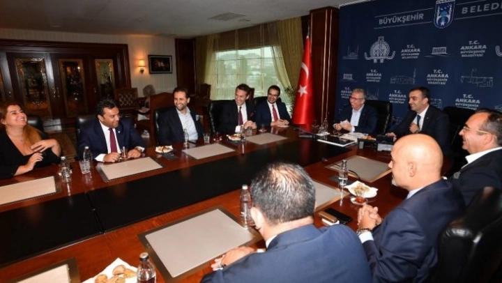 Başkan Yavaş'ı ziyaret eden Ankara Ticaret Borsası Yönetim Kurulu Başkanı Faik Yavuz, Ankara Ticaret Borsası Meclis Başkanı İbrahim Öztürk ile Ankara Sanayi Odası 1. Organize Sanayi Bölgesi Yönetim Kurulu Başkanı Niyazi Akdaş başkanlığındaki yönetim kurulu üyeleri de Başkent'in potansiyel iş gücü hakkında detaylı bilgi verdi. İş dünyası ile Büyükşehir Belediyesinin iş birliği yapmasının önemine dikkat çekilen ziyarette, Ankara'da istihdam oluşturacak projeler ve yatırımlar ile ilgili görüş alışverişinde bulunuldu.