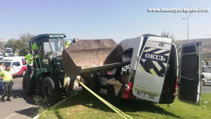Şanlıurfa'da freni boşalan kepçe, ilkokul öğrencilerini taşıyan servis minibüsüne çarptı. Kazada 11 öğrenci ile 2 sürücü yaralandı. Hastaneye kaldırılan çocuklardan 2'sinin durumunun ağır olduğu öğrenildi.
