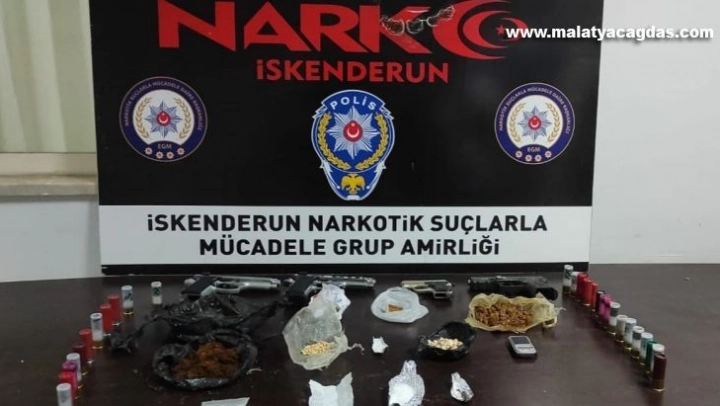 Hatay'ın İskenderun ilçesinde polisin düzenlediği operasyonda uyuşturucu ve silah ele geçirildi.