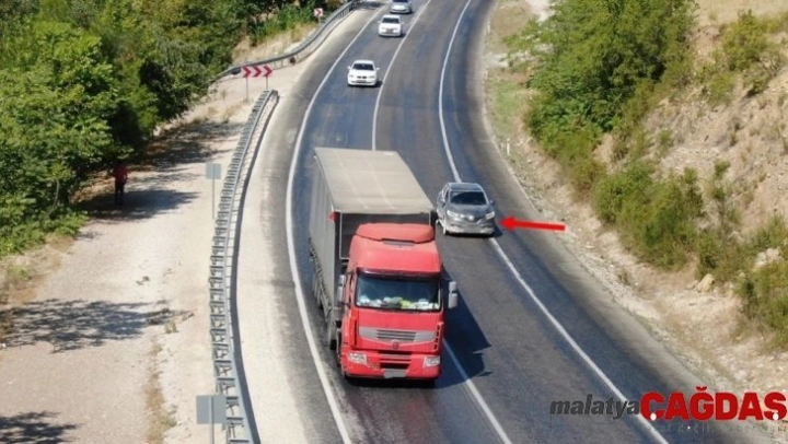 Isparta'da şerit ihlali yapan 53 sürücüye havadan ceza
