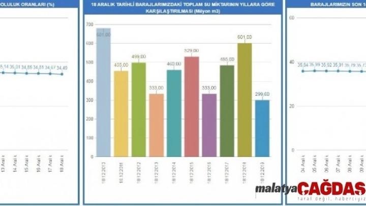 Barajlarındaki doluluk oranı 18 Aralık itibarıyla 34.49 olarak ölçüldü. Bu oran son 10 yılın en düşük seviyesi anlamına geliyor. Bu orana yakın olarak 2016 yılında aynı tarihte doluluk oranı yüzde 38.37 olarak ölçülmüştü. 2013'te ise 38.38 olarak ölçülmüştü. Barajlardaki en büyük doluluk oranı ise bu yıl 93.32 oran ile Mart ayında ölçüldü. Öte yandan İSKİ verilerine göre barajlarda bugün itibarıyla toplamda 299 milyon metreküp su kaldığı görüldü. Geçen yıl aynı tarihte ise 601 milyon metreküp su olduğu görüldü. İstanbul'un su ihtiyacını karşılayan en önemli barajlardan olan Alibeyköy Barajı'nda önceki yıllara göre su seviyesinde önemli derecede azalma oldu. Barajın su seviyesi 18 Aralık itibariyle 38.51'e kadar düştü. Barajın havadan görüntülerinde suların çekildiği alanlarda lastik izleri ortaya çıkmıştı.