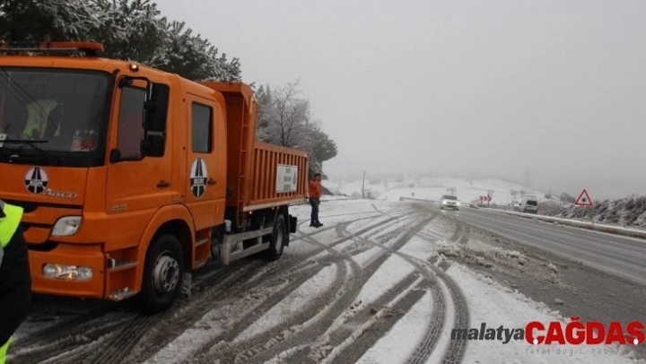 Manisa'nın Kula ilçesinde karayolları ekipleri, sabah saatlerinde başlayan kar yağışı sebebiyle karayolunda trafik akışında aksaklık yaşanmaması için tuzlama ve küreme çalışmaları yaptı.