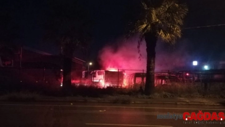 İzmir'de servis bakım alanında yangın: 6 araç yanarak küle döndü