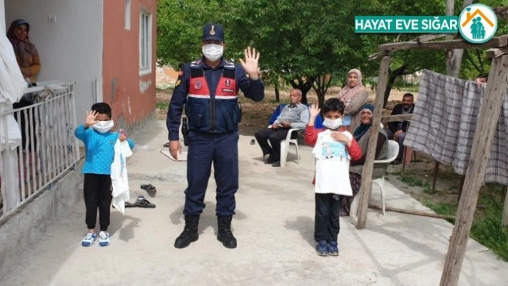 Malatya'nın Yeşilyurt ilçesinde Jandarma Trafik Timleri, Karayolu Güvenliği ve Trafik Haftası etkinlikleri kapsamında, korona virüs salgını nedeniyle sokağa çıkması yasak olan çocukları evlerinde ziyaret edip, çeşitli hediyeler verdi.