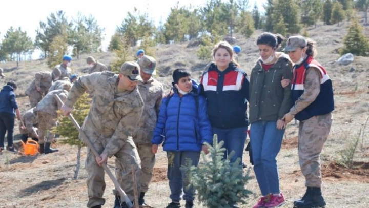 Malatya İl Jandarma Komutanlığı görevlileri, Orman Haftası çerçevesinde öğrencilerle fidan dikti.