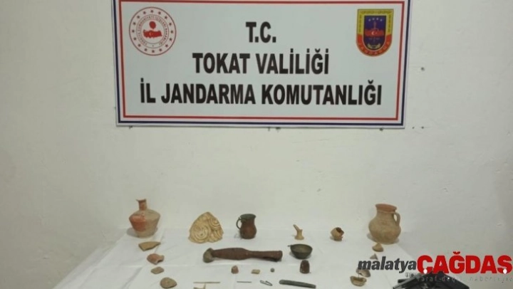 Edinilen bilgiye göre; Tokat İl Jandarma Komutanlığına bağlı ekipler Tokat'a bağlı Turhal ilçesinde 1 şüpheli şahsın tarihi eser kaçakçılığı yaptığını tespit etti. Harekete geçen ekipler şüpheli şahsın ilçe merkezinde bulunan ofisine operasyon düzenledi. Düzenlenen operasyon kapsamında yapılan aramada 27 adet tarihi eser niteliği taşıyan taş obje, 2 adet tarihi çömlek, 1 adet tarihi mızrak ucu, 2 adet sikke, 1 adet işlemeli sütun parçası, 1 adet içerisinde Arapça yazı dışında motifler bulunan taş ele geçirildi. 1 adet kuru sıkı tabanca ile birlikte şüpheli şahsın gözaltına alındığı bilgisine ulaşılırken, şüpheli ile ilgili adli işlemlerin yetkili makamların kontrolünde devam ettiği öğrenildi.