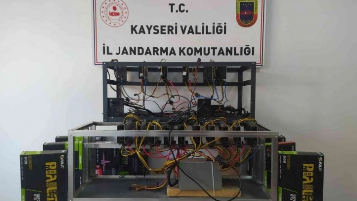 Kayseri'de jandarma ekipleri tarafından yapılan çalışmalarda, gümrük kaçağı cihazlar ile kripto para üreten 2 kişi yakalandı.