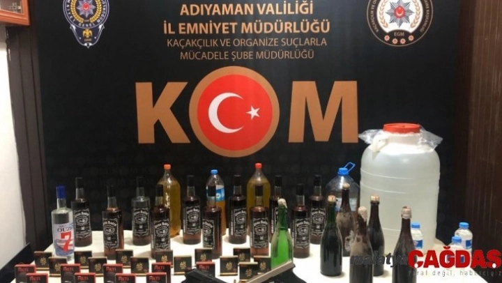 Edinilen bilgilere göre, Adıyaman il Emniyet Müdürlüğü Kaçakçılık ve Organize Suçlar Şube Müdürlüğü, Besni ilçe Emniyet Müdürlüğü ve Gölbaşı ilçe Emniyet Müdürlüğü ekiplerince Besni ilçesinde bulunan bir adrese kaçak içki operasyonu düzenlendi. Yapılan operasyonda 59 şişe kaçak viski, 65 litre alkol, 6 şişe 50 yıllık yıllanmış kaçak şarap, 1 adet kurusıkı tabanca, 1 adet ruhsatsız tabanca ve 22 adet cinsel güç artırıcı haplar ele geçirildi. Operasyonda ele geçirilen malzemelere el konulurken olayla alakalı M.Y., Y.S.ve B.S., isimli 3 kişi yakalandı. Şahıslar, sorgulanmak üzere polis merkezine götürüldü.