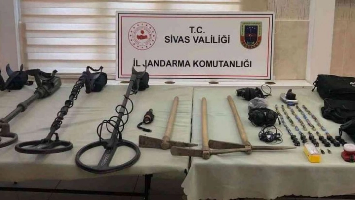 Sivas'ta kaçak kazı yapan bir kişi tutuklandı, 59 adet tarihi eser ele geçirildi.
